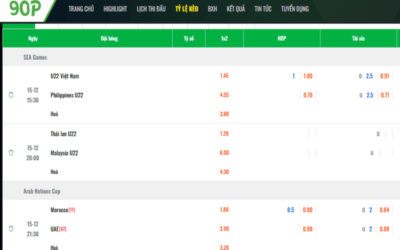 Không chỉ cung cấp tỷ số và diễn biến, 90Phut TV còn tích hợp thông tin về các kèo cược phổ biến