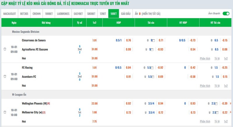 - Tỷ lệ kèo được update ngay khi nhà cái điều chỉnh