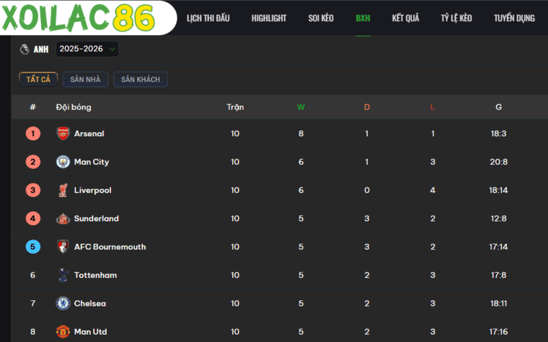 - Theo dõi và cập nhật: BXH sẽ được làm mới liên tục. Người dùng có thể xem thêm thông tin như lịch thi đấu sắp tới, thống kê bàn thắng hoặc phong độ từng đội.