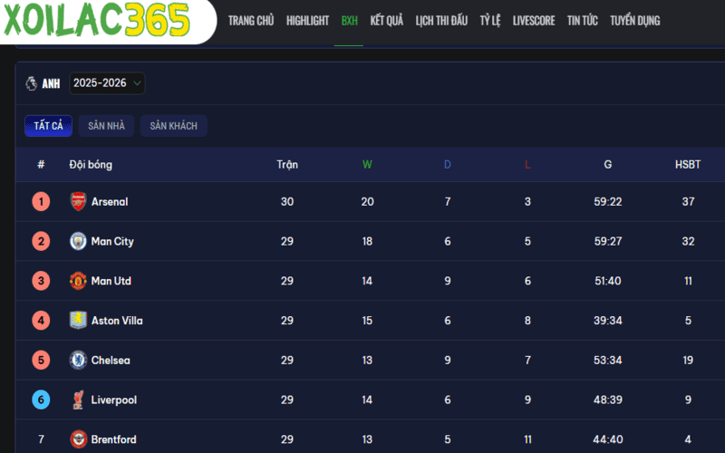 XoilacTV không chỉ cập nhật kết quả từng trận mà còn cung cấp bảng xếp hạng tổng thể của tất cả các giải đấ