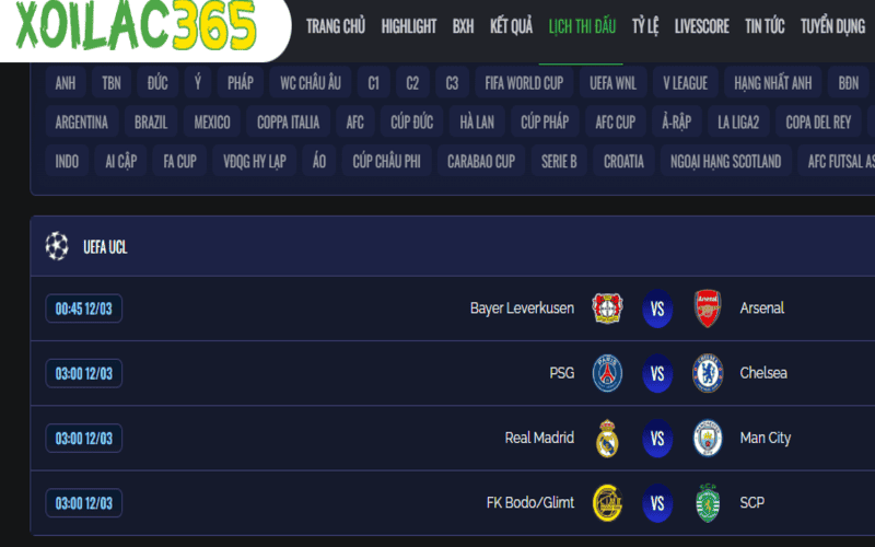 XoilacTV cập nhật lịch thi đấu đầy đủ cho hầu hết các giải bóng đá lớn nhỏ trên thế giới