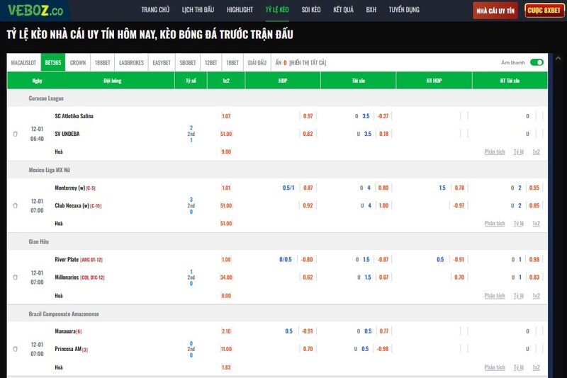 Tỷ lệ kèo malaysia và nhiều loại kèo khác luôn được Vebo Live cập nhật liên tục và real-time