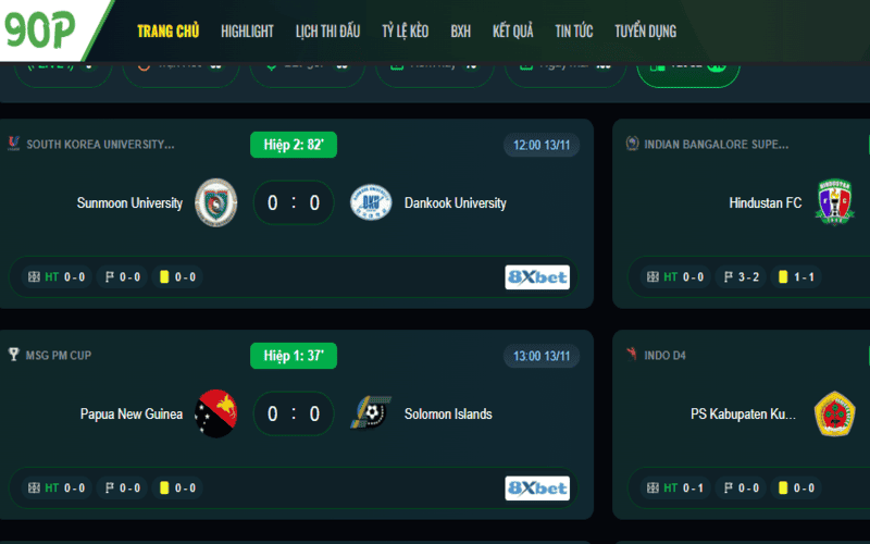 Nhắc đến những website thể thao nổi bật tại Việt Nam, 90PhutTV luôn là cái tên được cộng đồng yêu bóng đá nhắc đến đầu tiên. Trang web không chỉ nổi bật với khả năng phát trực tiếp các trận đấu mà còn gây ấn tượng mạnh nhờ hệ thống livescore siêu nhanh, cho phép người dùng theo dõi kết quả bóng đá hôm nay gần như tức thì.