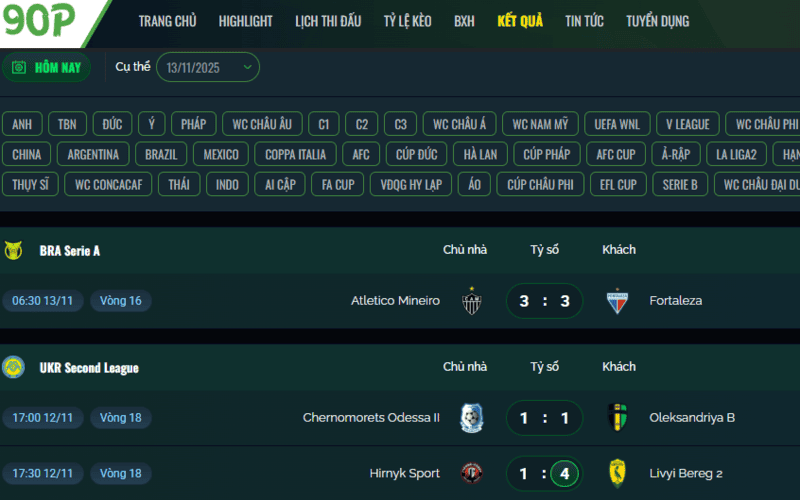 - Xem kết quả bóng đá hôm nay nhanh nhất – Chỉ có tại 90Phut TV